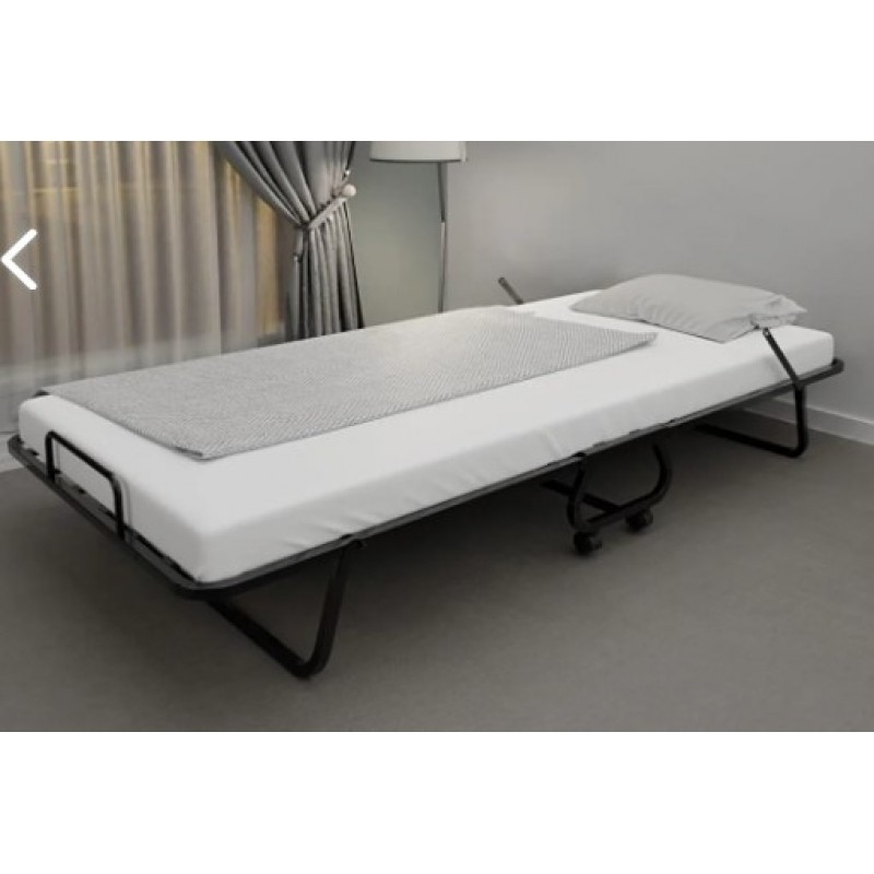 Patul pliant deschis are 80 cm lățime, 185 cm lungime și 28 cm înălțime. Cadrul este fabricat din metal vopsit în câmp electrostatic, cu picioare rabatabile și roți din polipropilenă.